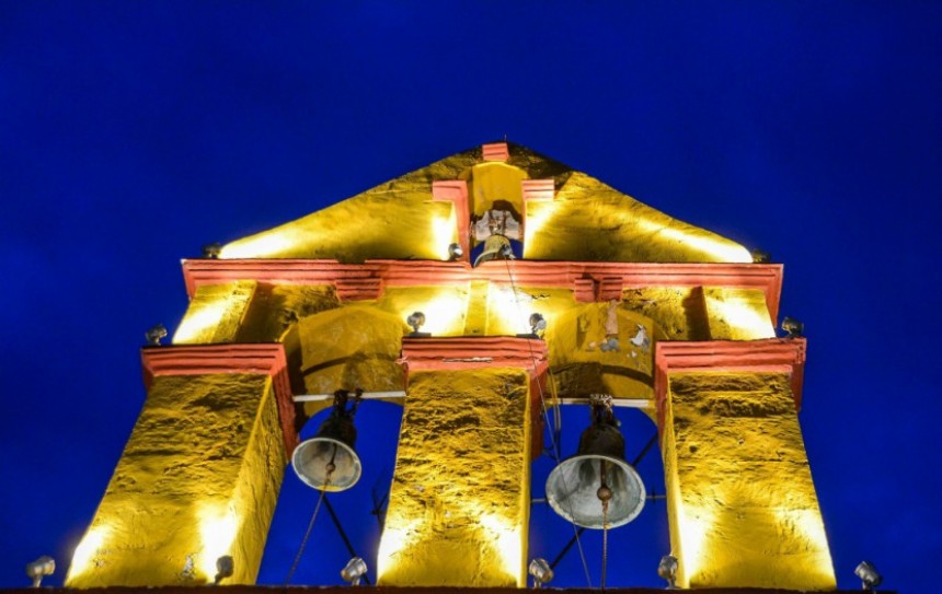 Το βλέμμα όμως σταμάτησε και εκεί, στα ψηλά της εκκλησίας, λίγο πριν την περιφορά, όπου το φωτισμένο καμπαναριό έμοιαζε επιβλητικό, και απόλυτα συνυφασμένο με την κορύφωση του θείου δράματος!