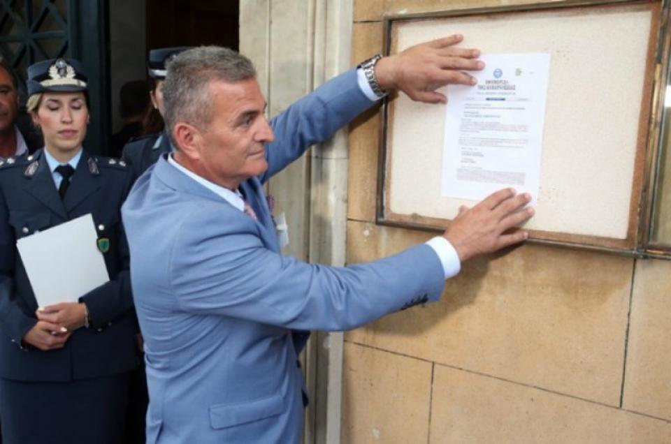 Το Προεδρικό Διάταγμα θυροκόλλησε στην ανατολική είσοδο του Μεγάρου του Κοινοβουλίου, ο φρούραρχος της Βουλής, υποστράτηγος, Κωνσταντίνος Κυριαζόπουλος.