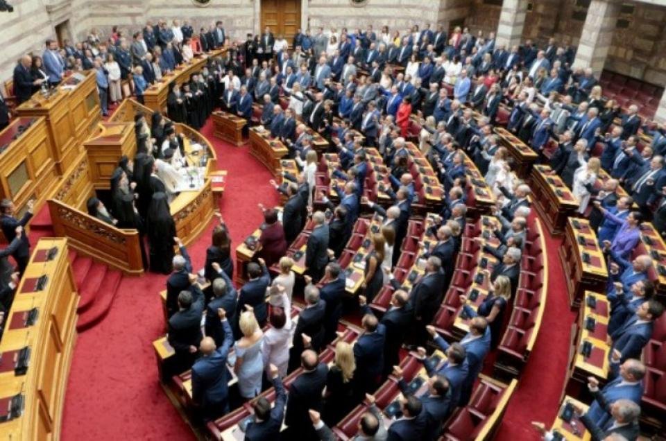 Tο νέο νομοθετικό Σώμα που προέκυψε μετά τις εκλογές της 7ης Ιουλίου ορκίστηκε το πρωί. Αύριο στις 10.30 θα συνέλθει η Βουλή όπου θα εκλεγεί ο νέος πρόεδρος της Βουλής και το Σάββατο ξεκινά η συζήτηση των προγραμματικών δηλώσεων της κυβέρνησης που θα ολοκληρωθεί με την παροχή ψήφου εμπιστοσύνης τη Δευτέρα 22 Ιουλίου. Στη Βουλή εκπροσωπούνται έξι κόμματα, η Νέα Δημοκρατία με 158 έδρες, ο ΣΥΡΙΖΑ- Προοδευτική Συμμαχία με 86, το Κίνημα Αλλαγής με 22, το ΚΚΕ με 15, η «Ελληνική Λύση» με 10 έδρες, η «Μέρα 25» με 9 έδρες.