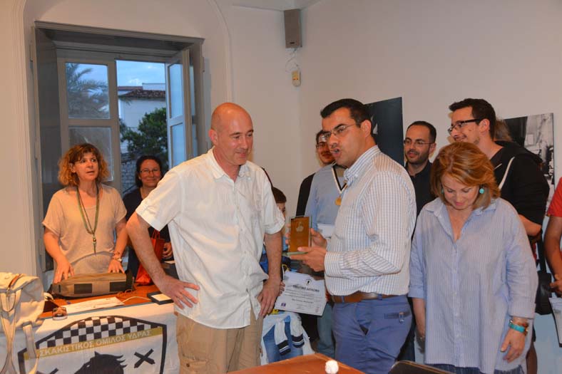 Στο τέλος της βραδιάς, ο Δήμαρχος Ύδρας, Γιώργος Κουκουδάκης, αφού καλωσόρισε στο νησί μας όλους τους παρευρισκόμενους και ευχήθηκε σύντομα να γίνουν και άλλες παρόμοιες διοργανώσεις, επέδωσε αναμνηστική πλακέτα των φετινών Μιαουλείων, στον Πρόεδρο του Σκακιστικού Ομίλου Ύδρας, Αντώνη Καλογιάννη.