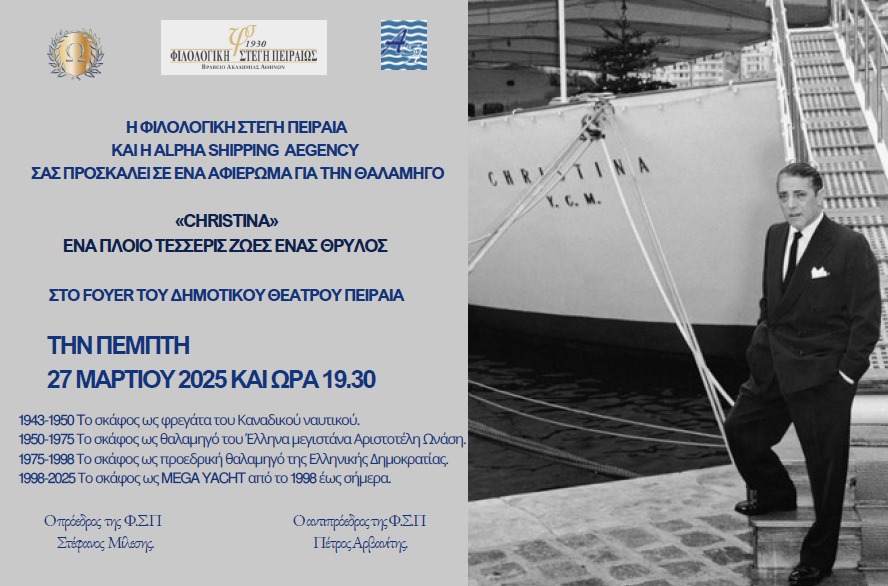 Η ιστορία της θρυλικής θαλαμηγού ΧΡΙΣΤΙΝΑΣ του Αριστοτέλη Ωνάση σε μια εκδήλωση - αφιέρωμα με τίτλο "Ένα πλοίο, τέσσερις ζωές, ένας Θρύλος".