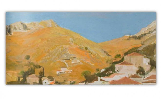 Τα τελευταία τέσσερα χρόνια ο σπουδαίος Ζωγράφος μας, εστιάζει επίμονα το βλέμμα του στις ομορφιές και τα τοπία του νησιού. Το Ζάστανι, η Μπουαγιά, τα Τσελεβίνια ζωντανεύουν μοναδικά μέσα από τα χρώματα του Παναγιώτη Τέτση. Παράλληλα, θα υπάρχουν και τα ασπρόμαυρα τοπία του, σε δίπτυχα και τρίπτυχα, με σινική μελάνη.