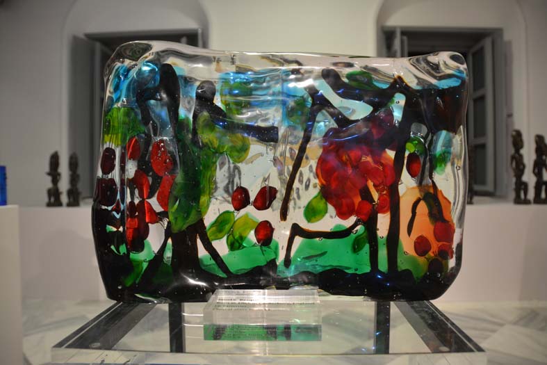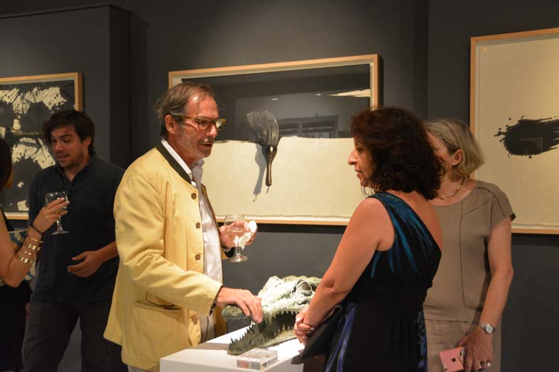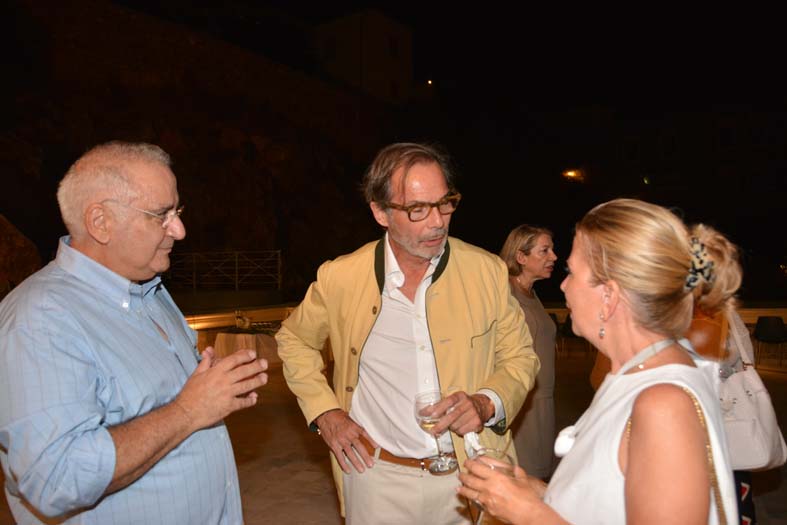 Μετά τις ομιλίες ακολούθησε δεξίωση με υπέροχα εδέσματα και κρασί και η ταράτσα του ΙΑΜΥ, έγινε μια ρομαντική «αυλή» γεμάτη από φιλότεχνους και εικαστικούς από όλο τον κόσμο. Ανθρώπους που συζητούσαν για αυτή τη μοναδική αίσθηση, που σου αφήνει αυτή η ιδιαίτερη έκθεση, με τα γλυπτά, τις συνθέσεις από σίδερο και αλουμίνιο, τους πίνακες ζωγραφικής, τα μουράνο και τις μεταξύ τους χρωματικές αντιθέσεις, που όμως όλα αυτά άλλοτε σκοτεινά, ανόμοια και άλλοτε φωτεινά και ελπιδοφόρα κατάφεραν να «δέσουν» μαγικά και εκλεπτυσμένα στον χώρο.