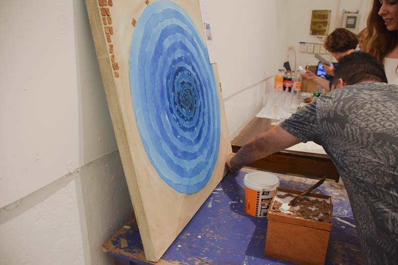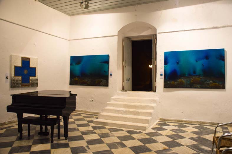 Στην έκθεση ανάμεσα στους εξαιρετικούς πίνακες, υπάρχει επίσης ένα έργο της Κατερίνας Μαραβέλη που παίζει διαδραστικά με το κοινό που επισκέπτεται τον χώρο. Κάθε θεατής του έργου, το οποίο έχει πάρει το χρώμα και την έμπνευση από την Ύδρα, μπορεί να τοποθετήσει στον πίνακα από μία ψηφίδα και να γίνει μέρος του έργου. Τον πίνακα αυτόν θα τον δωρίσει η καλλιτέχνης στον Δήμο Ύδρας.