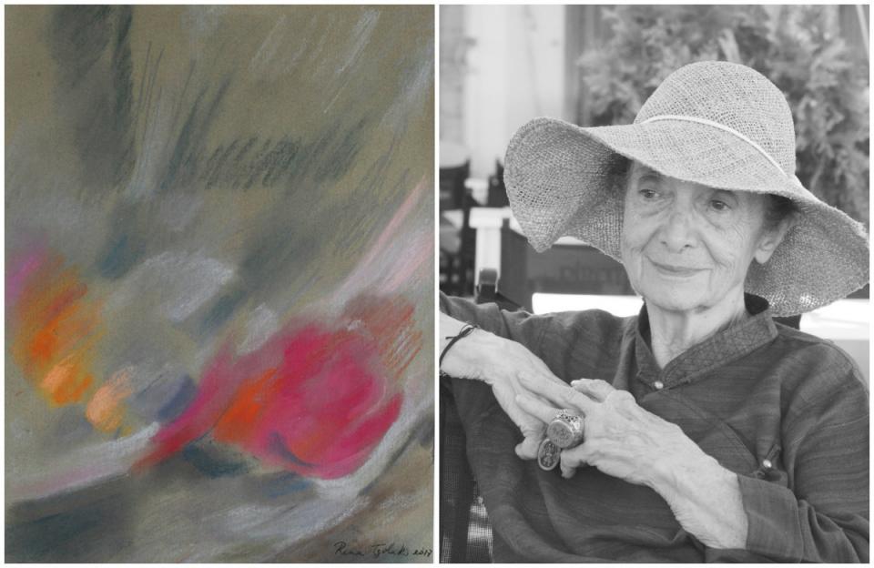 ‘Εκτοτε, το καλλιτεχνικό έργο της Ρένας Τζολάκη, εμβαπτισμένο στα νάματα των σπουδαίων δημιουργών της διδαχής το διατρέχει συνάμα ολότελα το δικό της προσωπικό ύφος και το σύνολο των δημιουργιών της, είτε αυτές είναι ελαιογραφίες, είτε ακουαρέλες, είτε λιθογραφίες, χαλκογραφίες, ακρυλικά, σχέδια με μολύβι, παστέλ (ειδικότερα τα δικής της επινόησης pastel en relief, τα περίφημα ανάγλυφα παστέλ), μεταφέρουν στο θεατή το ίδιο πάθος για ψυχική ανάταση και τη φρεσκάδα μιας αξεπέραστης νιότης που τη χαρακτηρίζει...