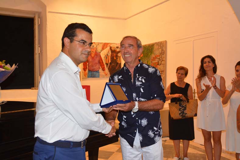 Σε σύντομο χαιρετισμό που έκανε ο Δήμαρχος Ύδρας Γιώργος Κουκουδάκης, ευχαρίστησε τον Δημήτρη Παύλου για την δωρεάν ανακαίνιση της αίθουσας, επεσήμανε ότι του χρόνου η αίθουσα θα έχει αναδιαμορφωθεί, και επέδωσε την τιμητική πλακέτα του Δήμου στον Ζωγράφο, ο οποίος έχει αναλάβει την οργάνωση των εκθέσεων που γίνονται στη "Μελίνα Μερκούρη". Με τη σειρά του ο Δημήτρης Αλέξανδρος Φατούρος δώρισε στον Δήμαρχο, ένα βιβλίο με διηγήματα του, του οποίου αντίτυπα έλαβαν και οι παρευρισκόμενοι.