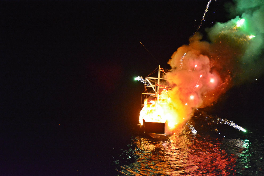 Μετά από ένα δεκαήμερο εορταστικών εκδηλώσεων του Δήμου Ύδρας αφιερωμένων στην 178η επέτειο από το θάνατο του Ναυάρχου Ανδρέα Μιαούλη, κορυφώθηκε χθες ο εορτασμός με την αναπαράσταση της Ναυμαχίας του Γέροντα και την καύση της οθωμανικής ναυαρχίδας.Οι εκδηλώσεις περιελάμβαναν την υποδοχή της φρεγάτας "ΥΔΡΑ" και των εκπροσώπων του Π.Ν., την επίσκεψη φορέων του νησιού στη φρεγάτα, την υποδοχή των επισήμων στο Δημαρχείο, ομιλίες, δρώμενο και τη συναυλία της μπάντας του Π.Ν.