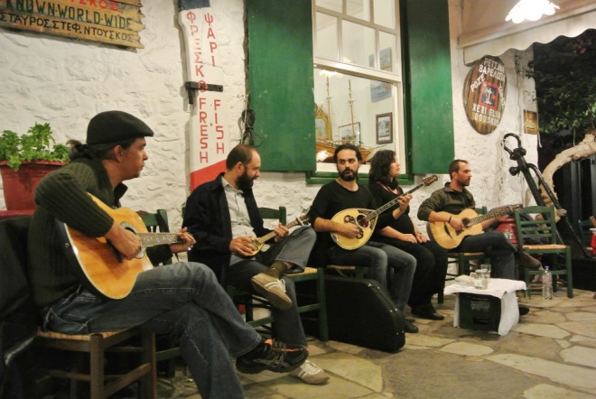Στη συνέχεια γνωστά ρεμπέτικα τραγούδια από γνήσιους μουσικούς του είδους, τους οποίους συνόδευε μουσικά και ο ίδιος ο Ed Emery, έδωσαν στον αέρα της κατάμεστης από κόσμο πλατείας της ταβέρνας, χίλιες νότες αυθεντικής διασκέδασης και κεφιού. Το κοινό αγκάλιασε θετικά την όμορφη βραδιά, δίνοντας το στίγμα μιας κοινής παρέας, ενώ όταν ο Ιρανός Peyman Heydarian έπαιξε σαντούρι, οι στιγμές ήταν πράγματι ιδιαίτερες, παραδοσιακές και πολύ μελωδικές. Αξίζει να αναφερθεί ότι ανάμεσα στους συνδαιτημόνες διασκέδαζε με την παρέα του ο αγαπητός φίλος της Ύδρας, επιχειρηματίας, συλλέκτης και ιδρυτής του ιδρύματος ΔΕΣΤΕ, Δάκης Ιωάννου.