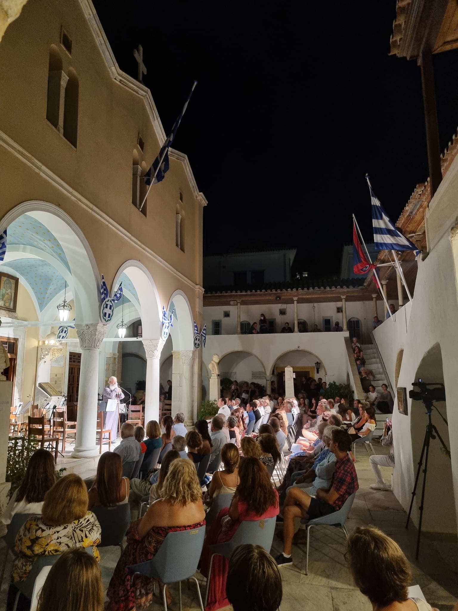 Με επιτυχία πραγματοποιήθηκε η 13η Μουσική Φιλανθρωπική εκδήλωση στο προαύλιο του Ιερού Καθεδρικού Ναού Ύδρας, παρουσία του Σεβασμιωτάτου Ποιμενάρχου μας κ. ΕΦΡΑΙΜ, της εριτίμου Υφυπουργού Εργασίας και Κοινωνικών Υποθέσεων κυρίας Δόμνας Μιχαηλίδου, του Πανοσ. Πρωτοσυγκέλλου, των αρχών της Νήσου και άλλων επισήμων και πλήθους φιλομούσων ακροατών.
