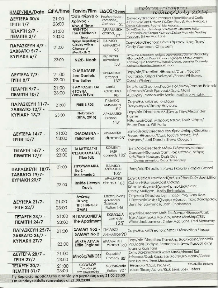 Πρόγραμμα προβολών στο CINE ΓΑΡΔΕΝΙΑ