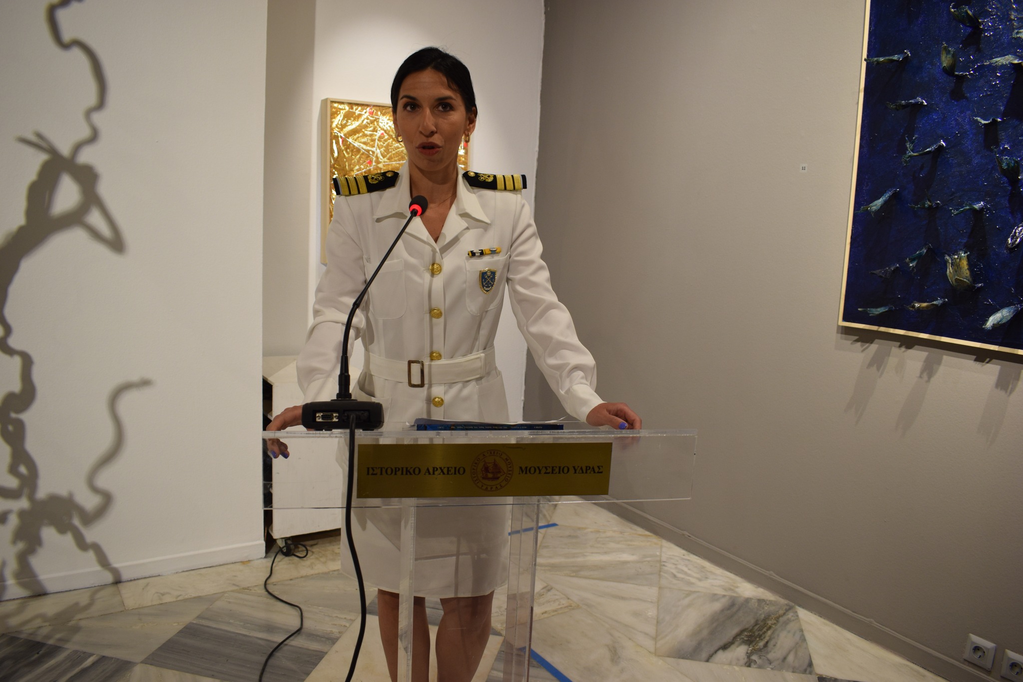 Ακολούθως ο λόγος δόθηκε στη Λιμενάρχη Ύδρας, πλωτάρχη κ. Μαρία Σπηλιοπούλου η οποία μίλησε επίσης εξαιρετικά για τον καλλιτέχνη και το έργο του.
