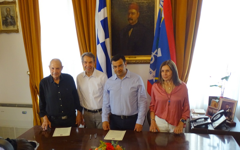 Νωρίτερα στο Δημαρχείο της Ύδρας παρόντος του Δημάρχου Γιώργου Κουκουδάκη υπογράφτηκε η σύμβαση παραχώρησης - παραλαβής μεταξύ του Δάκη Ιωάννου, της Λιέττας Ιωάννου με τον Δήμο Ύδρας για την δωρεά του έργου του Jeff Koons στον Δήμο Ύδρας.