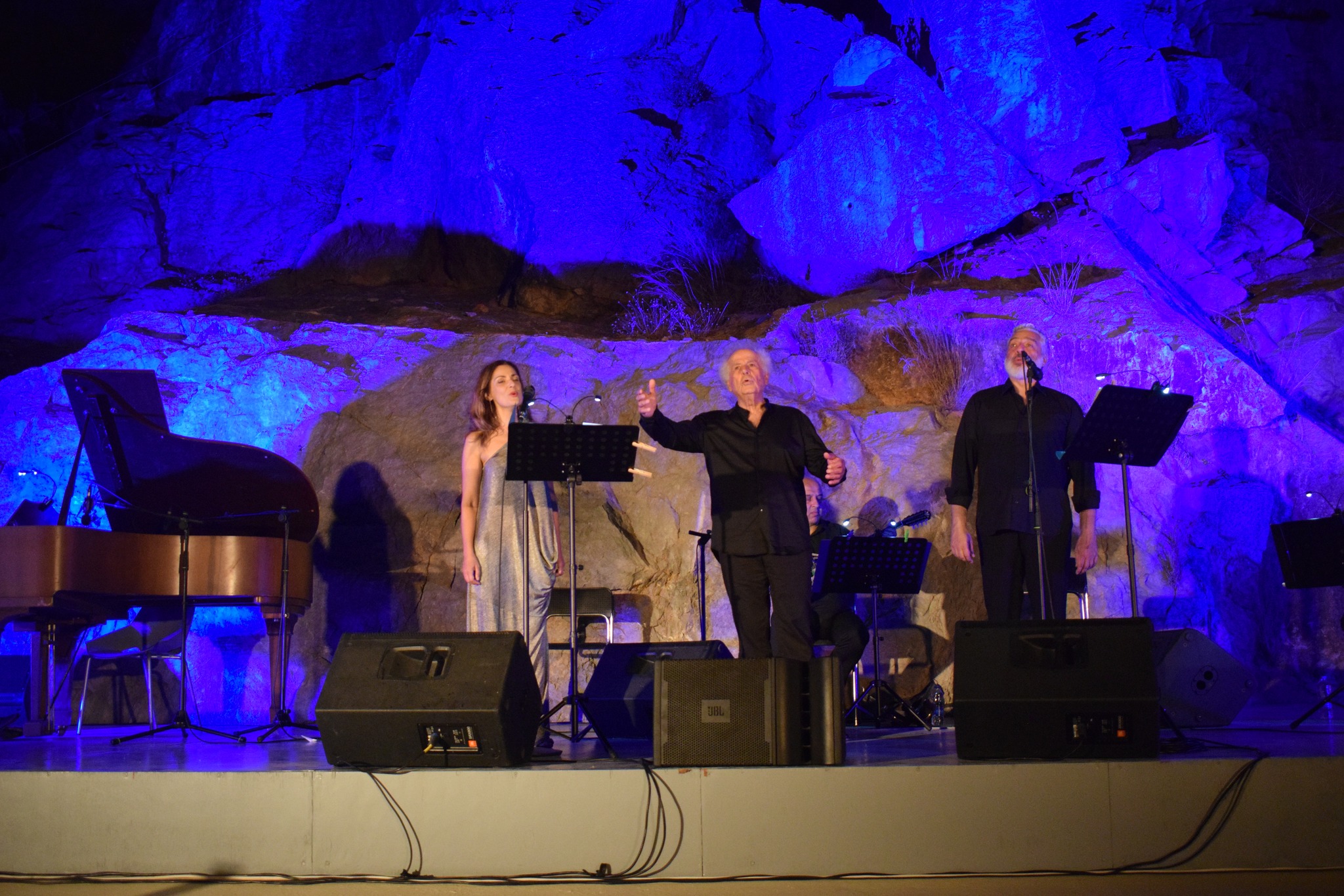 Στυ συνέχεια οι δύο σπουδαίοι ερμηνευτές Τάσσης Χριστογιανόπουλος και Θεοδώρα Μπάκα ταξίδεψαν το κοινό με τους μελοποιημένους στίχους του Ελύτη, του Σεφέρη, του Γκάτσου κ.α. και με τις μελωδίες του πιάνου, του βιολοντσέλο, του μαντολίνου και του μπουζουκιού.