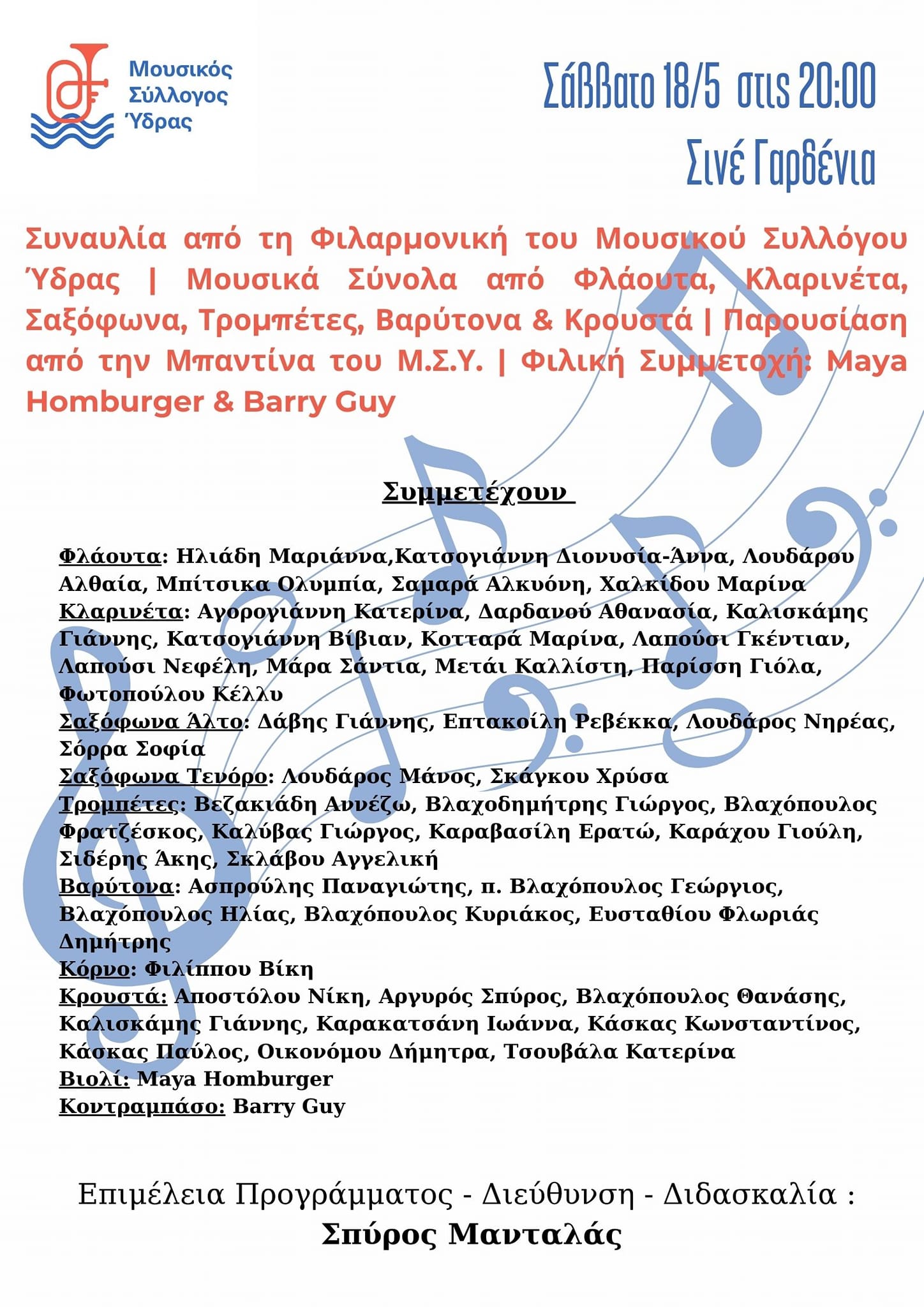 Tη λήξη της φετινής μουσικής χρονιάς θα γιορτάσει ο Μουσικός Σύλλογος Ύδρας, το Σάββατο και την Κυριακή, 18 και 19 Μαΐου.