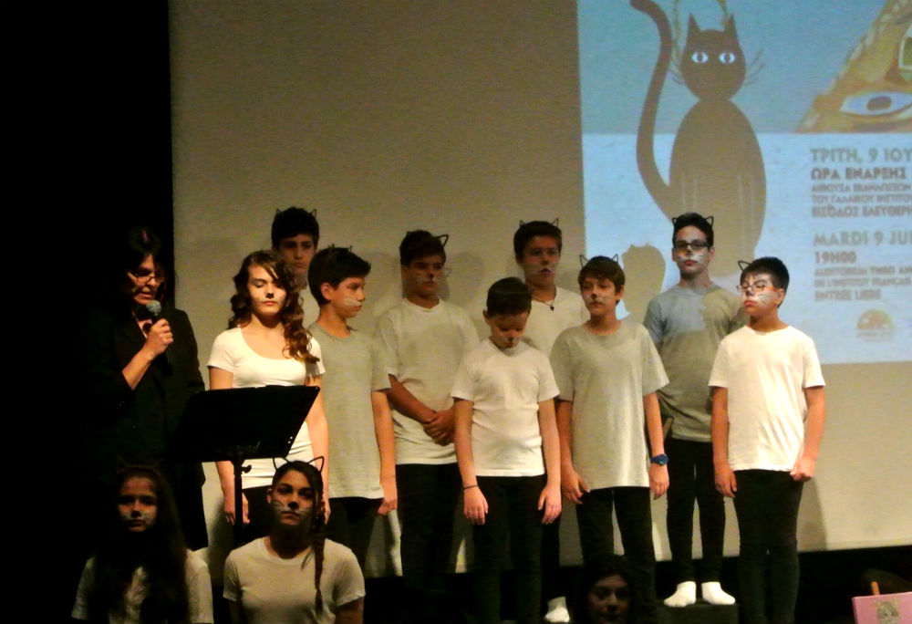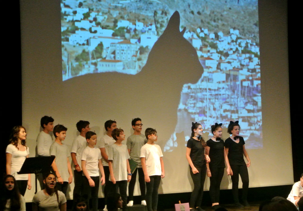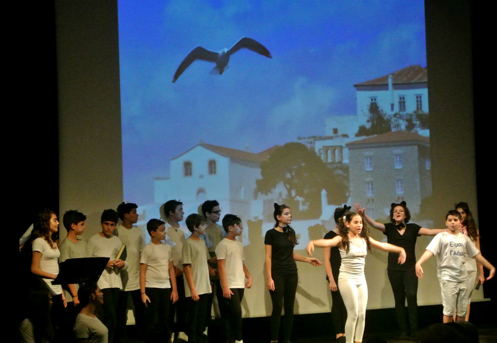 Μια υπέροχη δίγλωσση θεατρική παράσταση κατά την οποία η Ύδρα είχε κυριολεκτικά την τιμητική της, είχαμε τη χαρά να παρακολουθήσουμε χθες Τρίτη 9 Ιουνίου στο Γαλλικό Ινστιτούτο της Ελλάδας, που βρίσκεται στην Αθήνα. Μαθητές και μαθήτριες της έκτης τάξης, παρέα με μαθητές της Τρίτης, του δημοτικού σχολείου «ΠΑΙΔΑΓΩΓΙΚΗ», ζωντάνεψαν την ιστορία «Μια φορά και έναν καιρό ήταν ένας γάτος» (Il était une fois un chat), που ήταν βασισμένη στο βιβλίο του Χιλιανού συγγραφέα Luis Sepulveda και διανθισμένη από γνωστά ποιήματα και τραγούδια. Για την ακρίβεια ήταν η ιστορία ενός γάτου που έμαθε σε ένα γλάρο... να πετάει. Με έμφαση στην υπεράσπιση του αδύνατου και το δικαίωμα στη διαφορετικότητα κάθε πλάσματος.