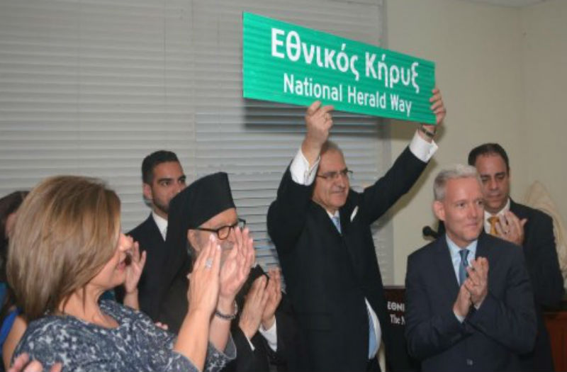 Σήμανση δρόμου στα ελληνικά απέκτησε η παγκόσμια πρωτεύουσα, κατά πολλούς, Νέα Υόρκη, όπου πάρα πολλοί ομογενείς ζουν και διαπρέπουν για δεκαετίες. Πρόκειται για την οδό «Εθνικός Κήρυξ – Νational Herald Way». s