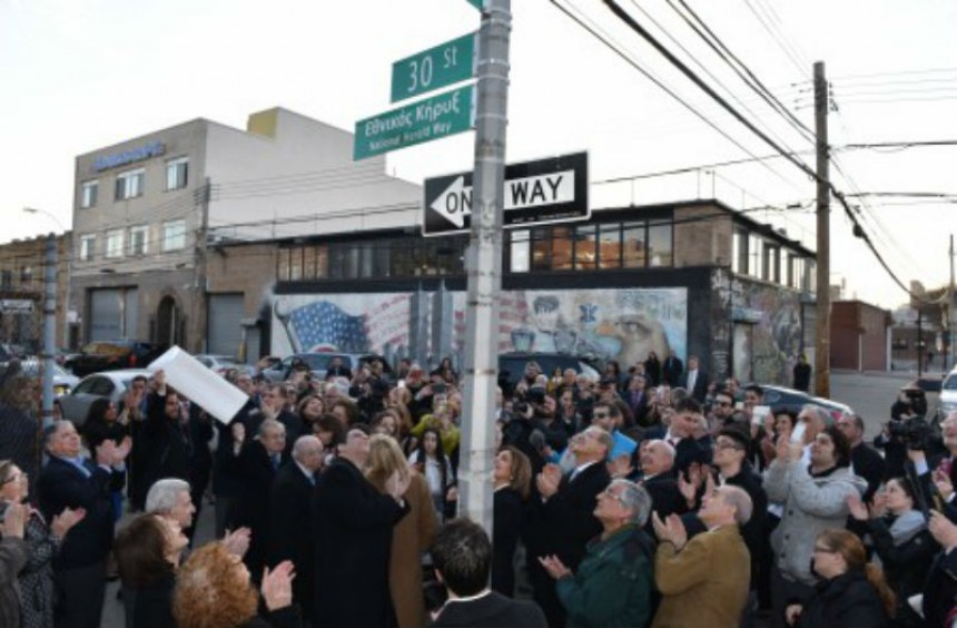 Τα αποκαλυπτήρια της σήμανσης, στον πυλώνα της οδού Con Edison στη συμβολή της 30ης Οδού και της 37ης Λεωφόρου στην Αστόρια -έξω από τα γραφεία της ημερήσιας ομογενειακής εφημερίδας «Εθνικός Κήρυξ»- έγιναν πρόσφατα. Πραγματοποιήθηκε ειδική εκδήλωση με αφορμή και την 101η επέτειο από την ίδρυση του «ΕΚ». Το πρώτο φύλλο κυκλοφόρησε στις 2 Απριλίου 1915.