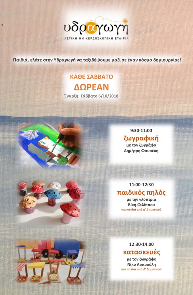 Δωρεάν μαθήματα στα παιδιά προσφέρει κάθε Σάββατο η Υδραγωγή Αστική Μη Κερδοσκοπική, ανοίγοντάς τους έναν δρόμο δημιουργικής σκέψης και καλλιτεχνίας.