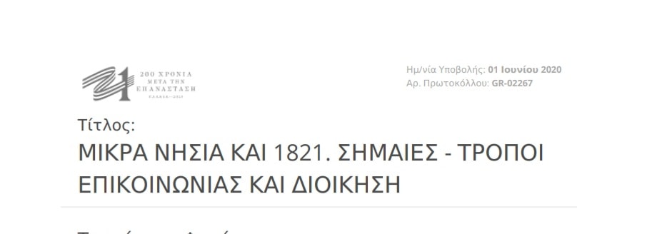 Επετειακές εκδηλώσεις για τα 200 χρόνια από την Ελληνική Επανάσταση με θέμα "Μικρά Νησιά και 1821. Σημαίες. Τρόποι επικοινωνίας και διοίκησης" θα πραγματοποιηθούν κατά το 13ο Πανελλήνιο Συνέδριο Μικρών Νησιών που θα γίνει τον Οκτώβριο 2021.