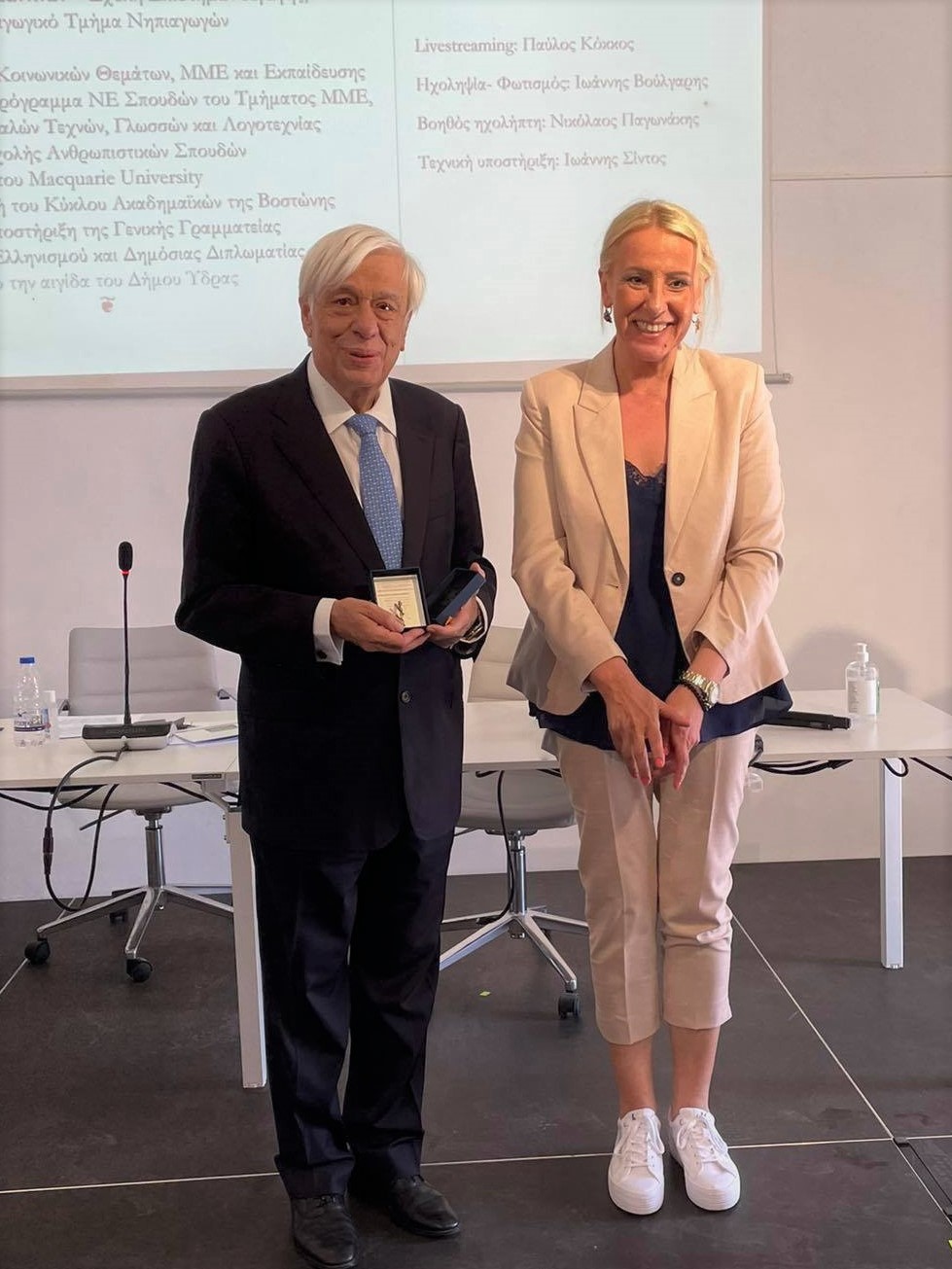 Στον χαιρετισμό της, η ιδρύτρια και ακαδημαϊκή διευθύντρια του Διεθνούς Θερινού Πανεπιστημίου, Νικολέττα Τσιτσανούδη – Μαλλίδη, Αν. Καθηγήτρια Γλωσσολογίας και Ελληνικής Γλώσσας, έκανε λόγο «για έναν στιβαρό θεσμό που λειτουργεί ως αντίπραξη δημιουργικής διάθεσης στις πολύ δυσχερείς εποχές που ζούμε, και ο οποίος ενδυναμώνεται από τις διεθνείς συνέργειες, αλλά και την εμπλοκή και συμμετοχή των νέων, στους οποίους είναι μονόδρομος να δοθεί πλέον το βήμα για την επόμενη ημέρα». Στην ιδρύτρια του προγράμματος ο δήμαρχος της Ύδρας κ. Γιώργος Κουκουδάκης προσέφερε το μετάλλιο «Ύδρα 1821-2021». Επίσης, η κ. Τσιτσανούδη προσέφερε στον τ. Πρόεδρο της Δημοκρατίας κ. Προκόπιο Παυλόπουλο ένα συμβολικό δώρο από την πλευρά του Πανεπιστημίου.
