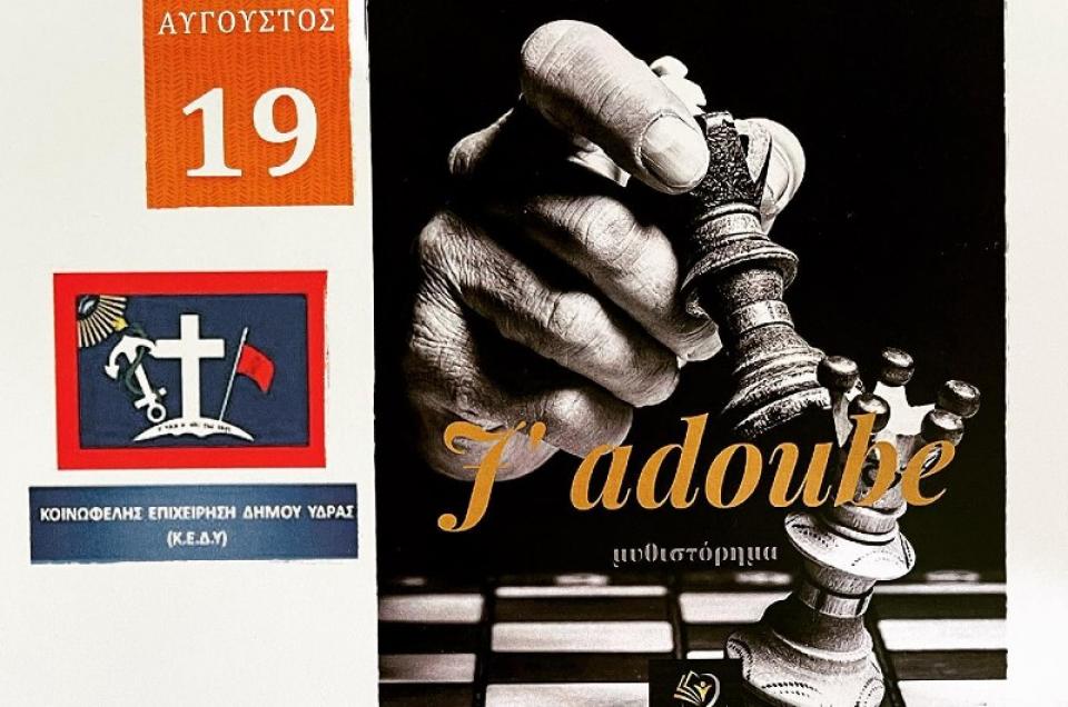Την Παρασκευή 19 Αυγούστου θα πραγματοποιηθεί από την Κοινωφελή Επιχείρηση του Δήμου Ύδρας στην Δημοτική Αγορά στις 8:30 το βράδυ, η παρουσίαση του βιβλίου του Γιώργου Φράγκου "J' adoube" (εκδόσεις ΟΤΑΝ).