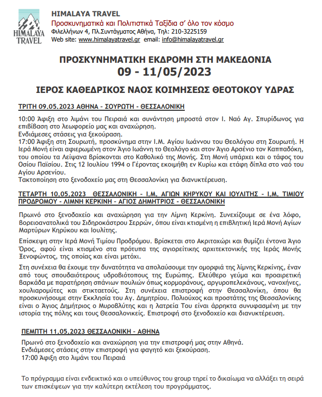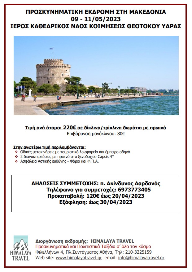 ΠΡΟΣΚΥΝΗΜΑΤΙΚΗ ΕΚΔΡΟΜΗ ΣΤΗ ΜΑΚΕΔΟΝΙΑ