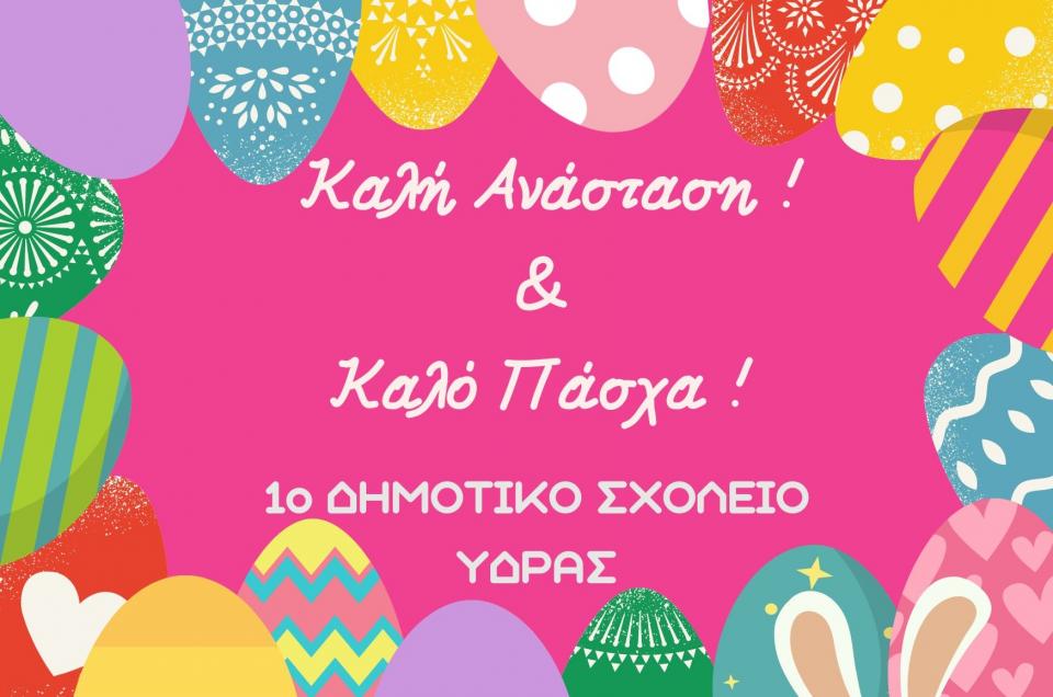 Το 1ο Δημοτικό Σχολείο Ύδρας, η Διευθύντρια Ματίνα Ρούσση, οι εκπαιδευτικοί και οι μαθητές του σχολείου, εύχονται με μια πανέμορφη γιορτινή κάρτα σε όλες και όλους ΚΑΛΗ ΑΝΑΣΤΑΣΗ ΚΑΙ ΚΑΛΟ ΠΑΣΧΑ!