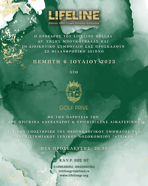 O Γενικός Γραμματέας του διεθνούς ανθρωπιστικού οργανισμού Lifeline Hellas, Πρόεδρος της Αδελφότητος Υδραίων Αθηνών Γιάννης Σαχίνης, προσκαλεί στο Φιλανθρωπικό Δείπνο που διοργανώνεται την Πέμπτη 6 Ιουλίου στις 20:30 στο Manor House του Golf Prive Glyfada.