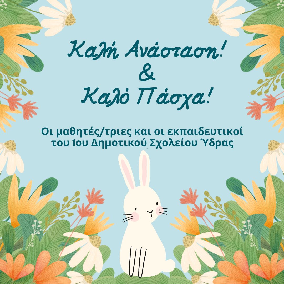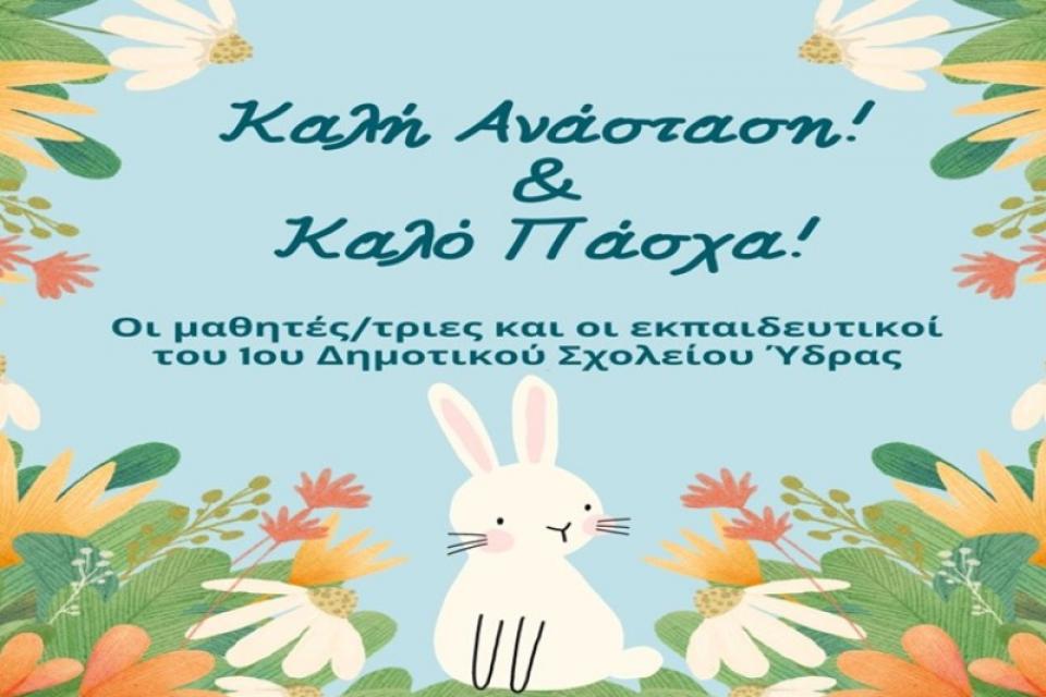 Με αυτή την υπέροχη πασχαλινή κάρτα εύχονται σε όλες και όλους Καλή Ανάσταση και Καλό Πάσχα οι μαθητές/τριες του 1ου Δημοτικού Σχολείου Ύδρας, οι εκπαιδευτικοί και η Διευθύντρια κα. Ματίνα Ρούσση.
