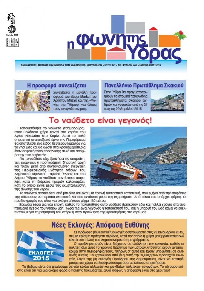Όλη η επικαιρότητα συγκεντρωμένη στην εφημερίδα μας. Με πλούσια ενημερωτική ύλη, άρθρα, σχολιασμούς, επισημάνσεις. Διαβάστε μεταξύ άλλων: Νέες Εκλογές: Απόφαση Ευθύνης, Το ναύδετο είναι γεγονός, Τι γίνεται με το γήπεδο; Θαλάσσια συγκοινωνία και εξομάλυνση αυτής κ.α. Και μην ξεχνάτε, συνεχίζεται η μεγάλη προσφορά για όλους τους αναγνώστες μας, για αγορές στο Super Market του Χρήστου Μπεξή.