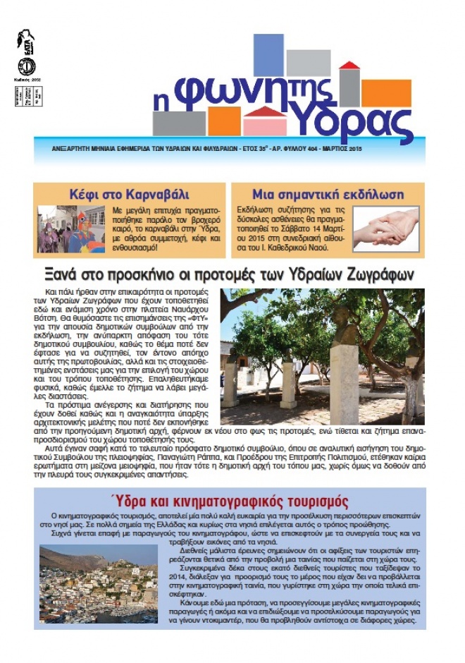 Όλη η επικαιρότητα συγκεντρωμένη στην εφημερίδα μας. Με πλούσια ενημερωτική ύλη, άρθρα, σχολιασμούς, επισημάνσεις. Διαβάστε μεταξύ άλλων: Ξανά στο προσκήνιο οι προτομές των Υδραίων Ζωγράφων, Ύδρα και κινηματογραφικός τουρισμός, δημοτικά νέα, εκδηλώσεις, το περισκόπιο και πολλά άλλα.
