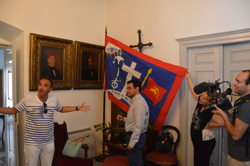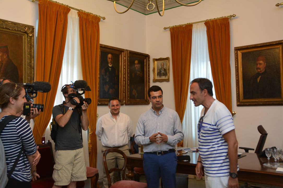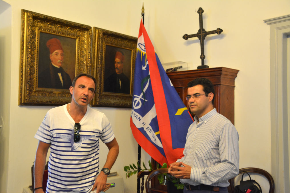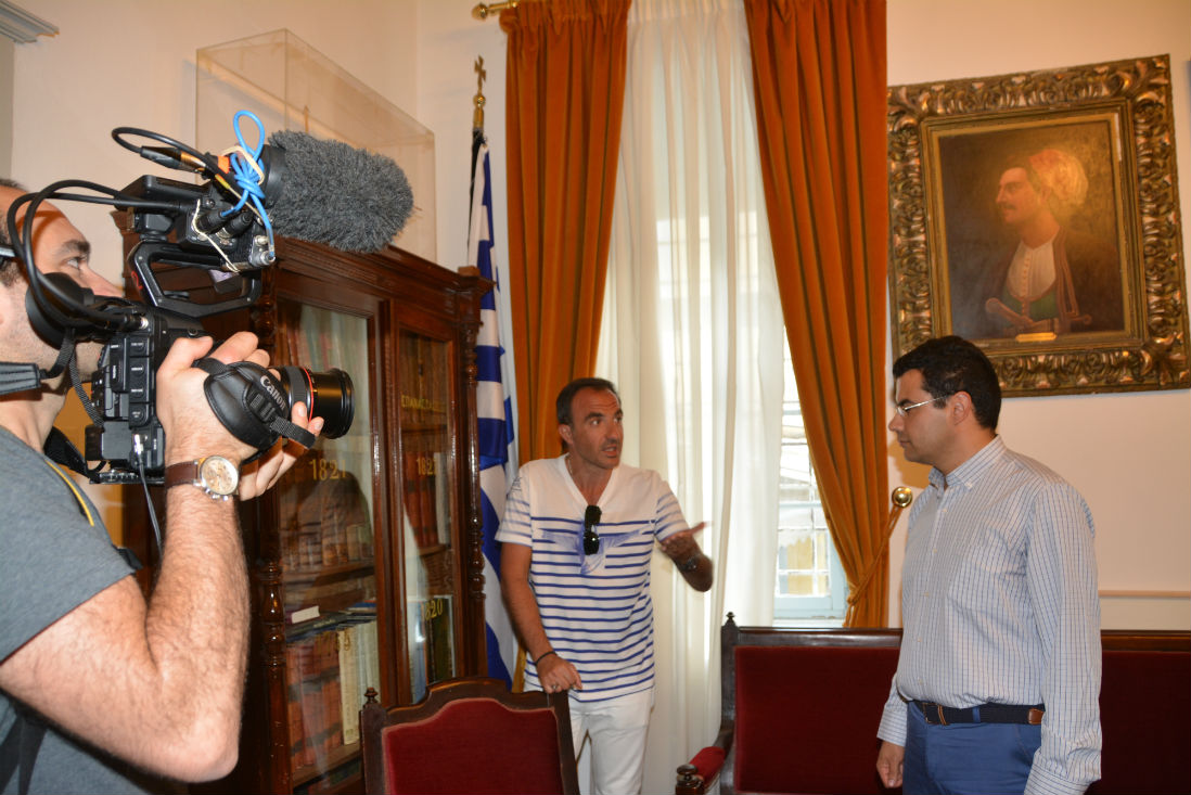 Ο Νίκος Αλιάγας βρίσκεται στην Ύδρα αυτές τις μέρες και πραγματοποιεί γυρίσματα της εκπομπής του " 50 minute inside" που παίζεται στη γαλλική τηλεόραση. Μαζί με το συνεργείο του βρέθηκε χθες το απόγευμα στο Δημαρχείο του νησιού μας όπου συνάντησε τον Δήμαρχο, Γιώργο Κουκουδάκη και ξεναγήθηκε στους χώρους του ιστορικού αυτού μέρους. Σε ένα κλίμα φιλόξενο ο καταξιωμένος Έλληνας Δημοσιογράφος που ζει στη Γαλλία, ενημερώθηκε από τον Δήμαρχο για τον ρόλο της Ύδρας στην Ελληνική Επανάσταση, για την κοσμοπολίτικη αύρα του νησιού, για τη ζωή και την καθημερινότητα, καθώς επίσης για τη σημασία των συμβόλων της σημαίας μας. Πρωτύτερα ο Νίκος Αλιάγας είχε επισκεφτεί τις Πλάκες ενώ μετά το Δημαρχείο συνέχισε το ρεπορτάζ για την εκπομπή του και σε άλλα ενδιαφέροντα σημεία του νησιού μας.
