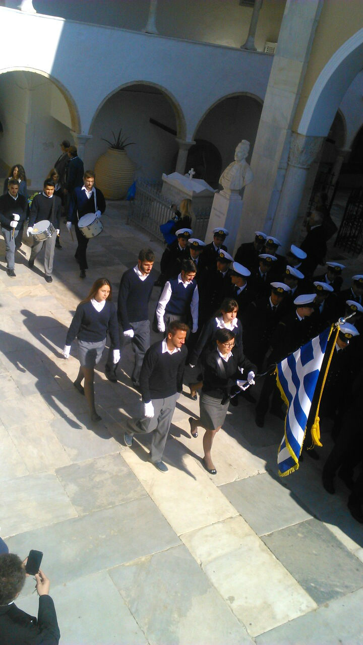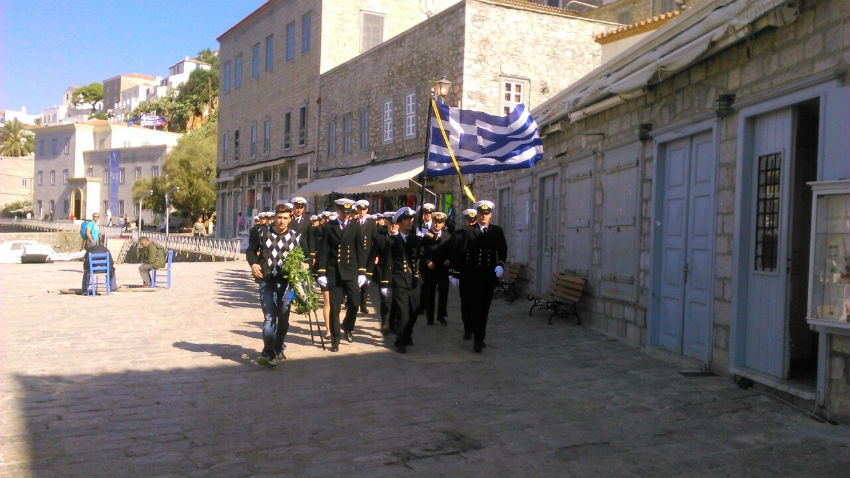 Σήμερα το πρωί πραγματοποιήθηκε στην Ύδρα στο πλαίσιο του εορτασμού της εθνικής μας επετείου της 28ης Οκτωβρίου, κατάθεση στεφάνων από τους μαθητές των σχολείων και τους σπουδαστές της Ακαδημίας Εμπορικού Ναυτικού στο Ηρώο των Πεσόντων στο προαύλιο του Ι. Καθεδρικού Ναού.