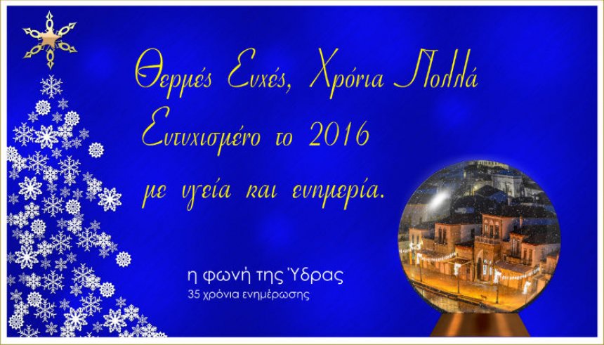 H «Φωνή της Ύδρας» με όλη της την αγάπη, εύχεται σε όλους τους Υδραίους και φίλους του νησιού μας, Χρόνια Πολλά και δίνει πολλές και θερμές ευχές για όμορφες και χαρούμενες εορταστικές μέρες με υγεία, ευημερία και ευτυχία.
