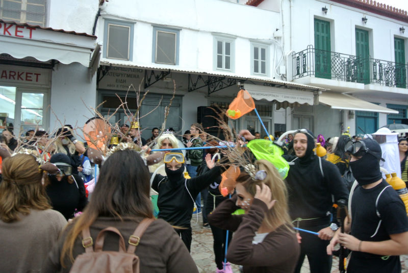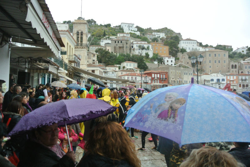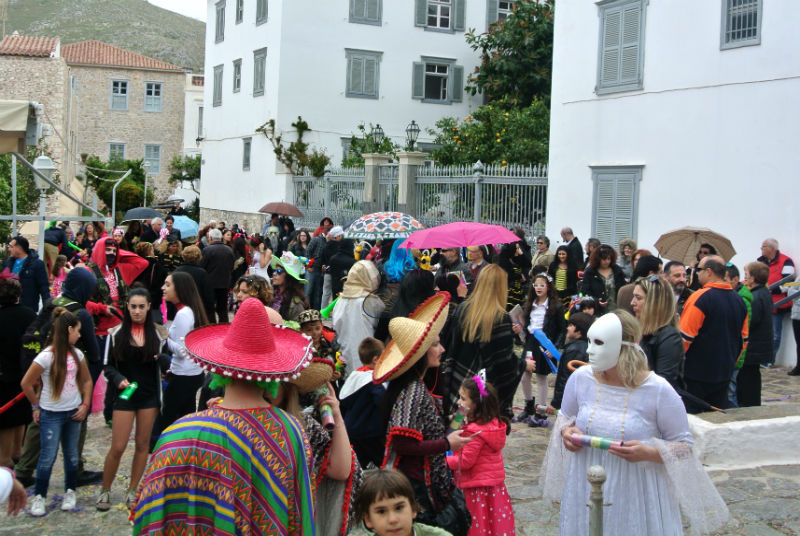 Πλήθος κόσμου συνέρρευσε και φέτος στο Καρναβάλι της Ύδρας. Απ' ότι φάνηκε η βροχή δεν πτόησε κανέναν και δεν αφαίρεσε το κέφι και τον ενθουσιασμό από τους χαρούμενους καρναβαλιστές. Σφουγγαράδες, δύτες και η γοργόνα, πειρατές και πειρατίνες, μεξικάνοι και μεξικάνες, μέλισσες, μωρά, ροκ σταρ, έντονες περούκες και κάθε λογής στολή με φαντασία και μεράκι φορέθηκε και φέτος. Γνωστοί και φίλοι μαζί με τους επισκέπτες του νησιού μας, αφού συγκεντρώθηκαν στην πλατεία Βότση, όλοι μαζί έκαναν τον καθιερωμένο γύρο για να φτάσουν στην παραλία μετά από δύο ώρες και να στήσουν υπό βροχή ξέφρενο χορό.