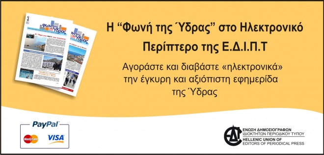 Εκτός από την ταχυδρομική αποστολή της εφημερίδας μας η οποία λαμβάνεται από τους συνδρομητές μας, υπάρχει και μια άλλη νέα δυνατότητα που απευθύνεται σε όσους επιθυμούν να διαβάζουν κάθε μήνα την έντυπη έκδοση της "Φωνής της Ύδρας" ηλεκτρονικά στον υπολογιστή, στα smart phones ή στο tablet τους.