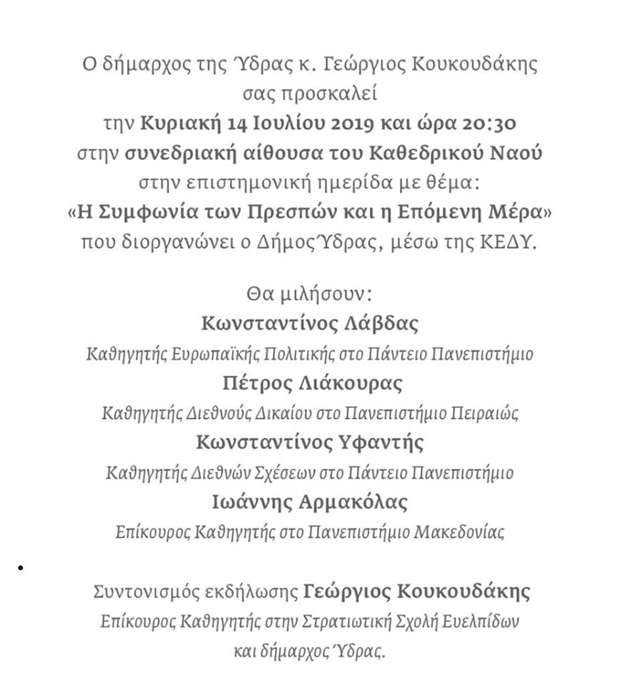 Την εκδήλωση διοργανώνει ο Δήμος Ύδρας μέσω της ΚΕΔΥ.