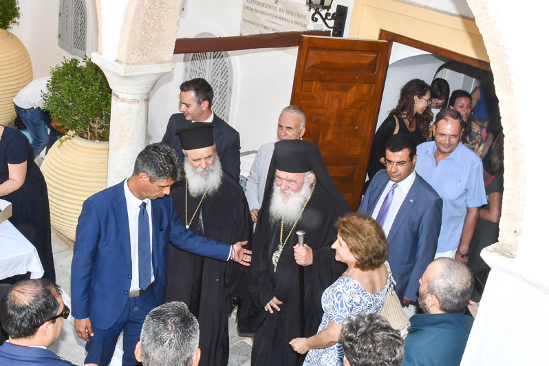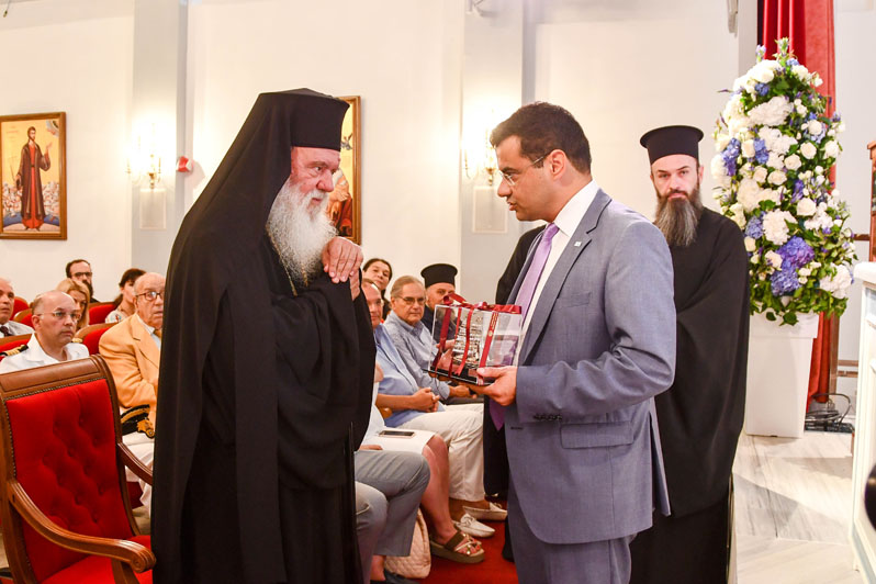 Κατόπιν ανταλλάχθηκαν αναμνηστικά μεταξύ του Αρχιεπισκόπου και του Δημάρχου.