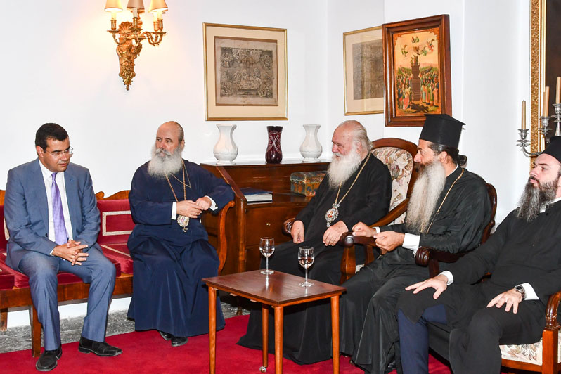 Έπειτα ο Μακαριώτατος επισκέφτηκε το Ιστορικό Αρχείο - Μουσείο Ύδρας όπου ξεναγήθηκε από τη Διευθύντριά του Ντίνα Αδαμοπούλου στους χώρους του.