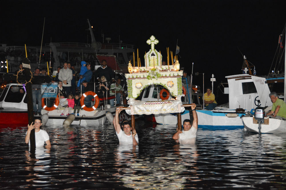 Ο επιτάφιος του Άη Γιάννη στο Καμίνι τη Μ. Παρασκευή προσέλκυσε τα βλέμματα πλήθους κόσμου, όταν βυθιζόταν στη θάλασσα για να έχουν καλά ταξίδια οι ναυτικοί μας. Στη συνέχεια έγινε η περιφορά των επιταφίων των άλλων ενοριών και του Καθεδρικού Ναού που συγκεντρώθηκαν όλοι μαζί στην παραλία.
