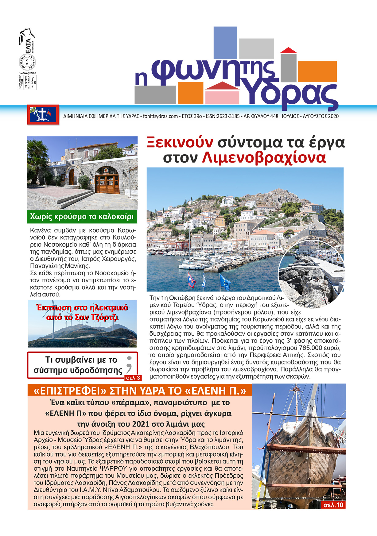 Κυκλοφόρησε το τεύχος Ιουλίου-Αυγούστου (Αρ. Φύλ. 448) της "Φωνής της Ύδρας" με 20 ΣΕΛΙΔΕΣ ενημέρωσης και όλα τα νέα του νησιού για το δίμηνο που πέρασε αλλά και ό,τι ακολουθεί.