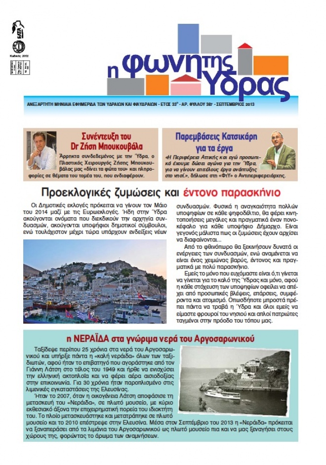 Όλη η επικαιρότητα συγκεντρωμένη στην εφημερίδα μας. Με πλούσια ενημερωτική ύλη, άρθρα, σχολιασμούς, επισημάνσεις, συνέντευξη και ένα νέο αφιέρωμα. Διαβάστε μεταξύ άλλων: Προεκλογικές ζυμώσεις και έντονο παρασκήνιο, παρεμβάσεις του Αντιπεριφερειάρχη Νήσων Δημήτρη Κατσικάρη για τα έργα στο νησί μας και δηλώσεις στη "ΦτΥ", το Νεράιδα ως πλωτό μουσείο ταξιδεύει ξανά στα νερά του Αργοσαρωνικού, το περισκόπιο του μήνα κ.λπ.