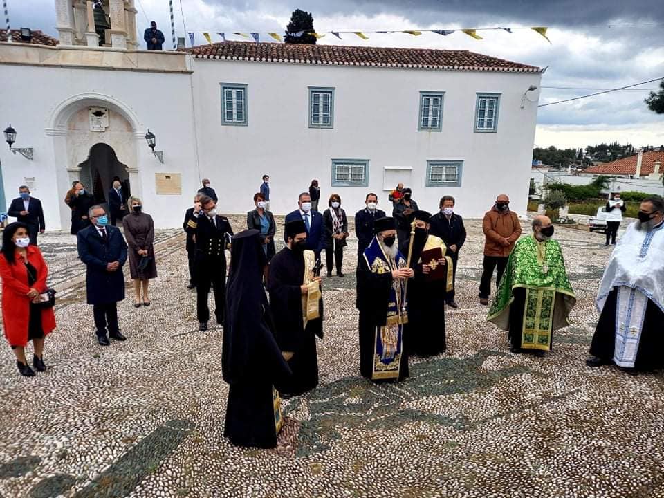 Εν συνεχεία ετέλεσε την Δοξολογία για την επέτειο της Επαναστάσεως εν Σπέτσαις την 3η Απριλίου 1821, Κυριακή των Βαΐων.