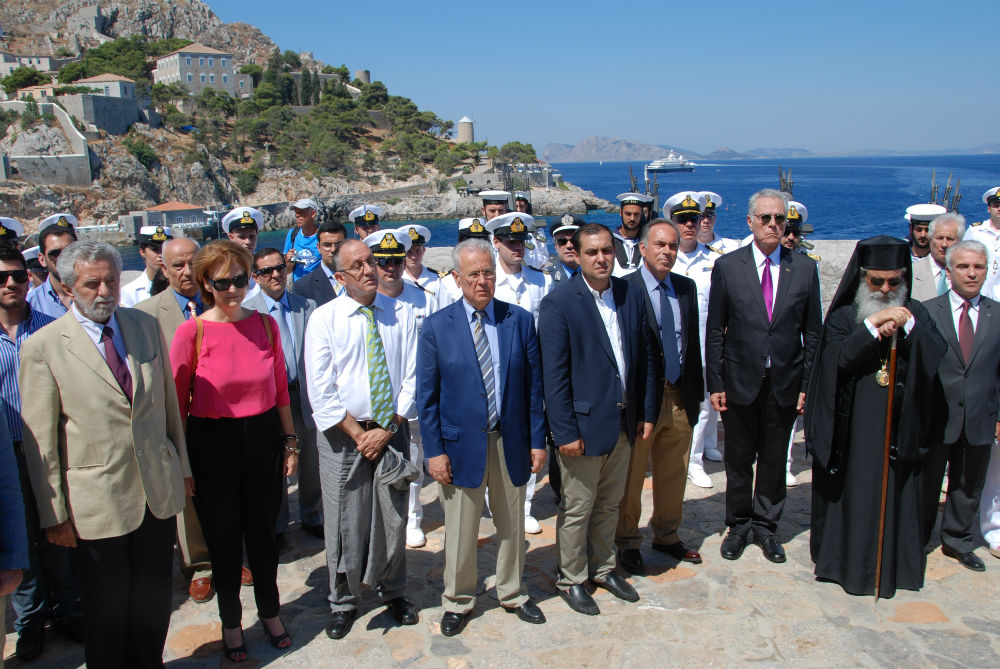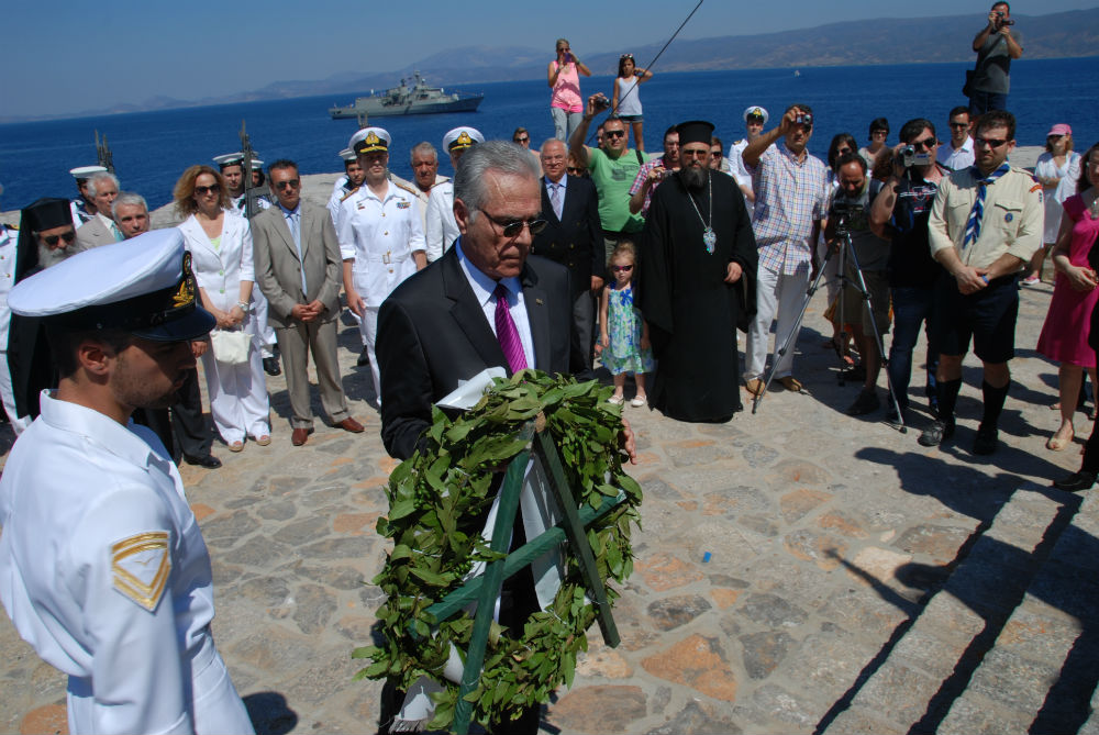 Μιαούλεια 2012 Κατάθεση στεφάνων στον Ανδριάντα του Ναυάρχου Μιαούλη