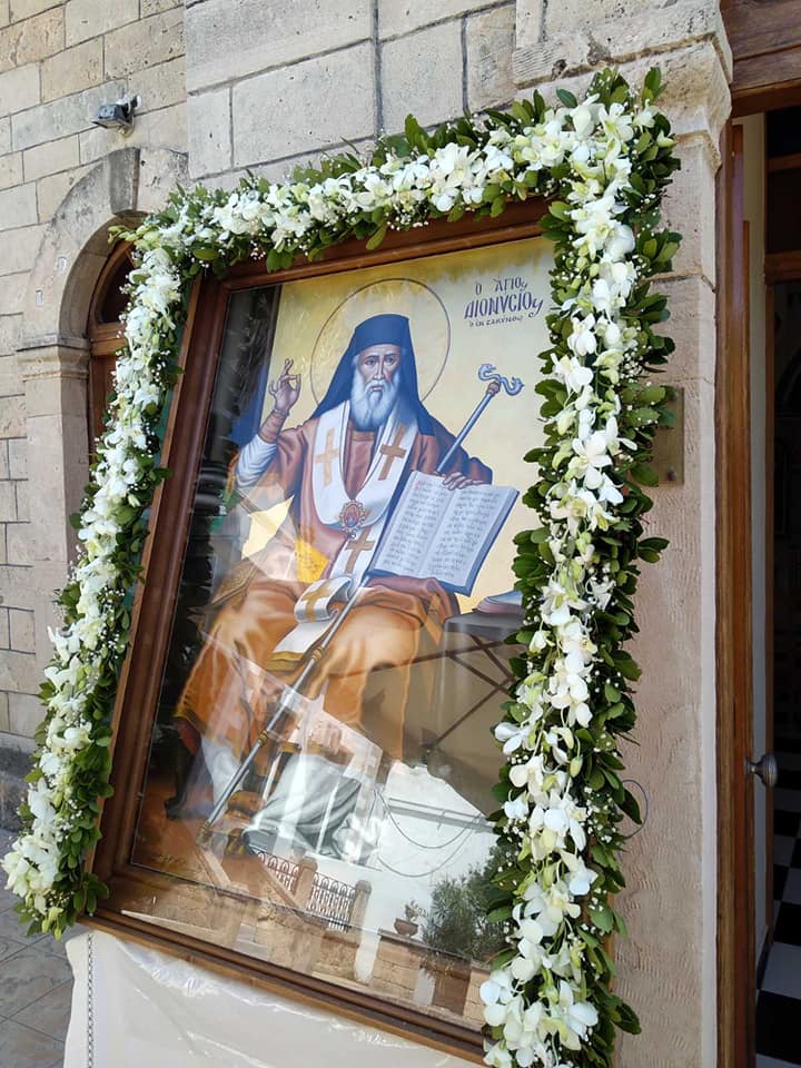 "Μέ ἰδιαίτερη λαμπρότητα καί κατάνυξη ἐτελέσθησαν εἰς τό Νοσοκομεῖον Αἰγίνης "¨Ο ΑΓΙΟΣ ΔΙΟΝΥΣΙΟΣ"¨, Νοσηλευτικόν Ἵδρυμα τό ὁποῖον λειτουργεῖ ὑπό τήν αἰγίδα τῆς Μητροπόλεώς μας, αἱ Ἑορταστικαί ἐκδηλώσεις ἐπί τῇ μετακομιδῇ τῶν λειψάνων τοῦ ἐν ἁγίοις πατρὸς ἡμῶν Διονυσίου τοῦ Θαυματουργοῦ, Προστάτου τοῦ Ἱδρύματος.