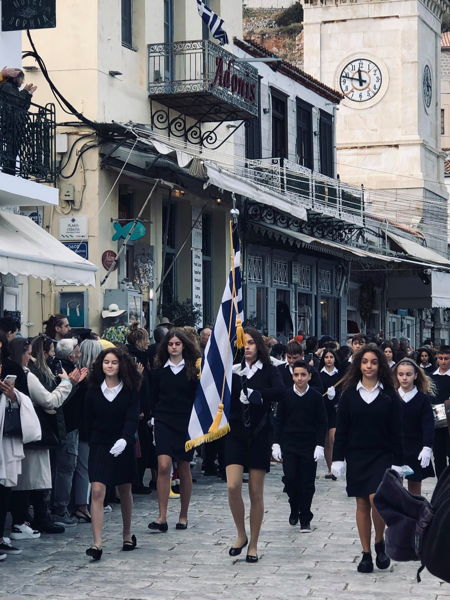 Με τη λήξη, πλήθος κόσμου αποχώρησε από τον προαύλιο χώρο της Μητρόπολης και μεταφέρθηκε στην παραλία όπου παρακολούθησε και χειροκρότησε με ενθουσιασμό την όμορφη παρέλαση των μαθητών των σχολείων, του Μουσικού Συλλόγου Ύδρας και των σπουδαστών της ΑΕΝ.