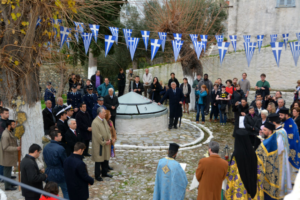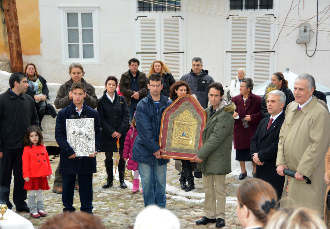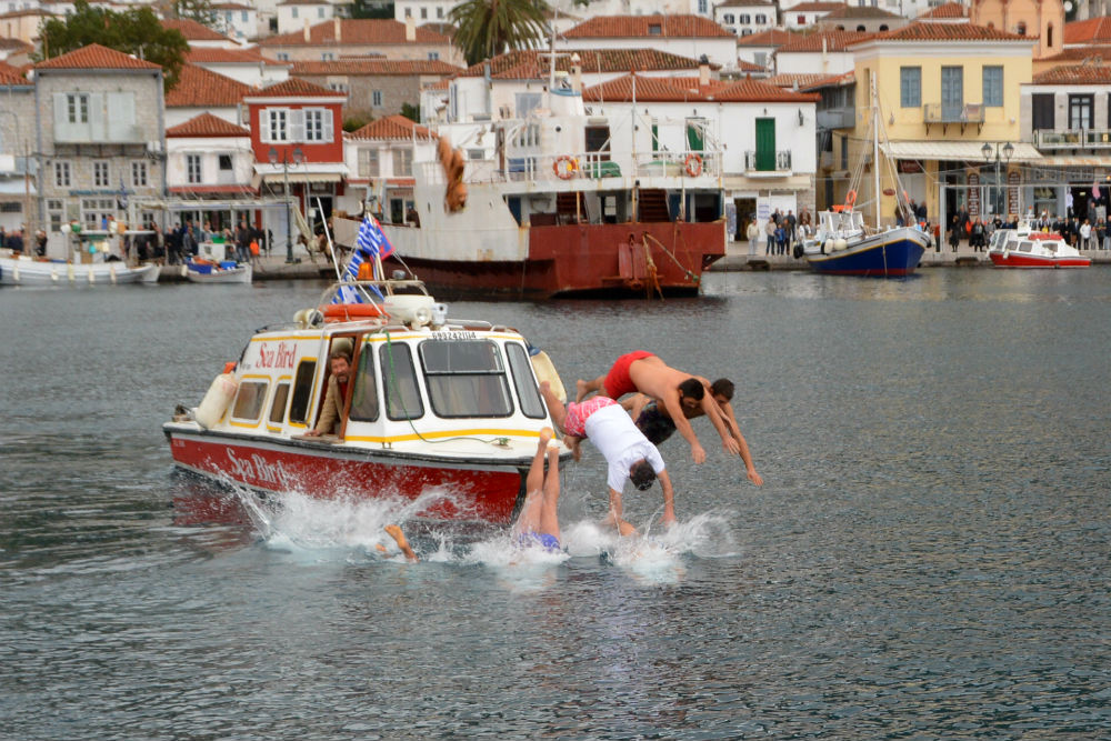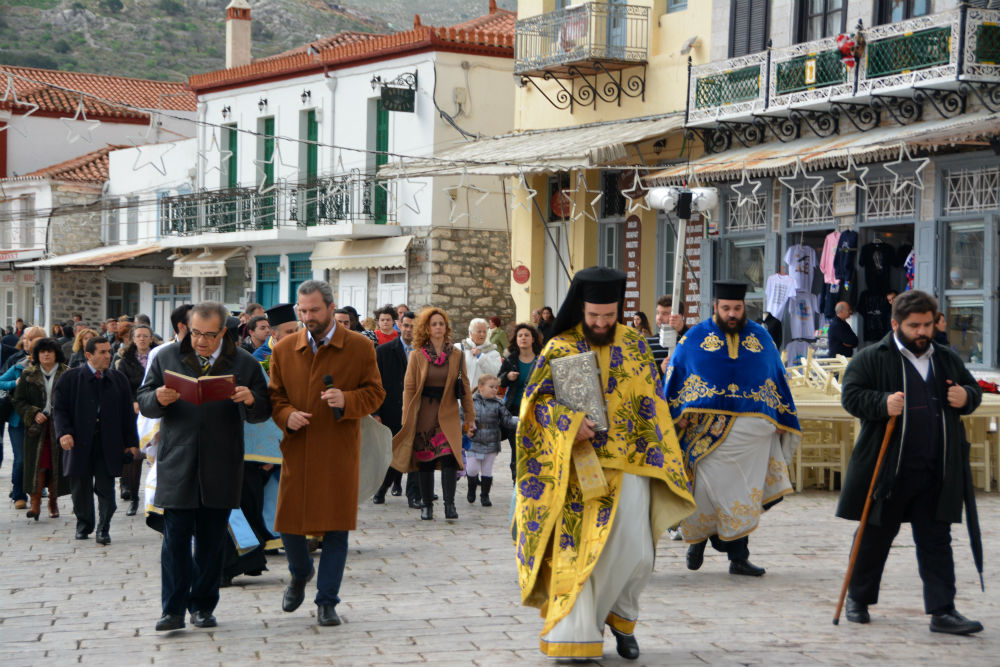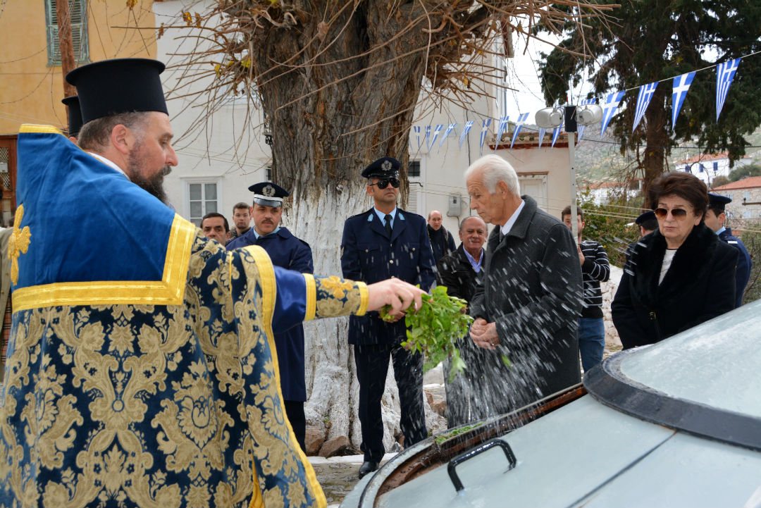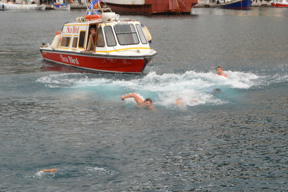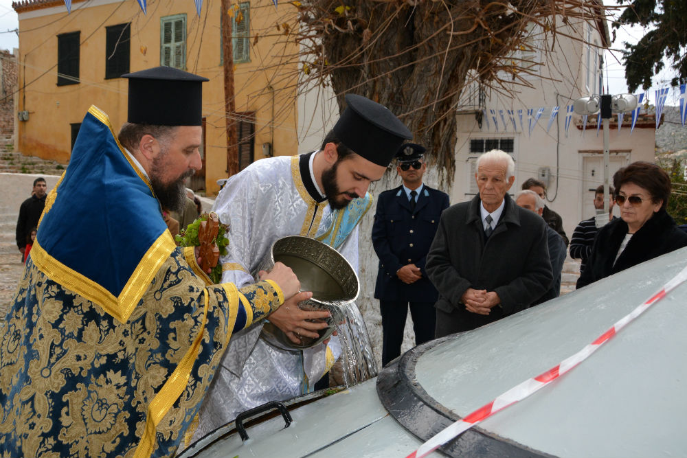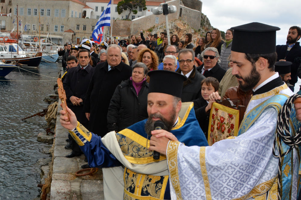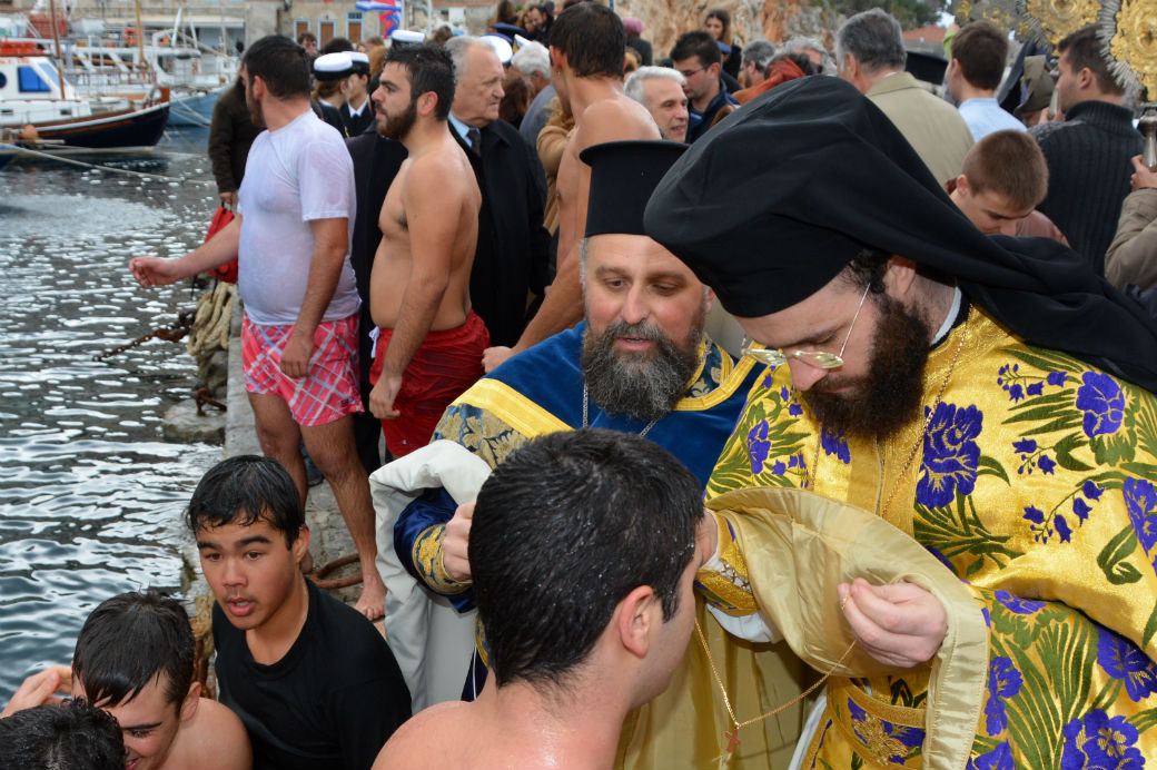 Mέσα σε σεπτό κλίμα και κατάνυξη γιορτάστηκαν και φέτος τα Θεοφάνεια στο νησί μας με τη συμμετοχή του ιερού κλήρου και πλήθους κόσμου. Ο βαρύς ουρανός που προμήνυε βροχή, δεν εμπόδισε τους πιστούς, που ακολούθησαν την πομπή προς τα Καλά Πηγάδια για τον αγιασμό των υδάτων αλλά και παρακολούθησαν την κατάδυση του τιμίου σταυρού στη θάλασσα στον λιμενοβραχίονα. Με δύναμη και ενθουσιασμό οι θαρραλέοι νέοι του νησιού μας έπεσαν να "πιάσουν" το σταυρό. Ο επιστήθιος σταυρός που δόθηκε στον άξιο νέο μαθητή Λυκείου Γιώργο Σκόρρα, είναι χορηγία του Κοινωφελούς Ιδρύματος Ύδρας Στυλιανού και Μαρίας Βέτιμη.