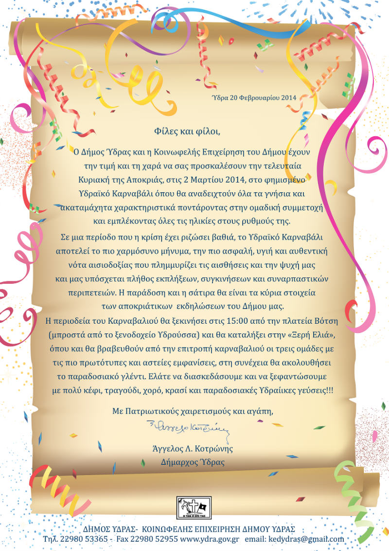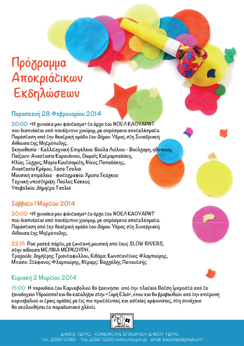 Πρόγραμμα Αποκριάτικων Εκδηλώσεων και Υδραίικο Καρναβάλι