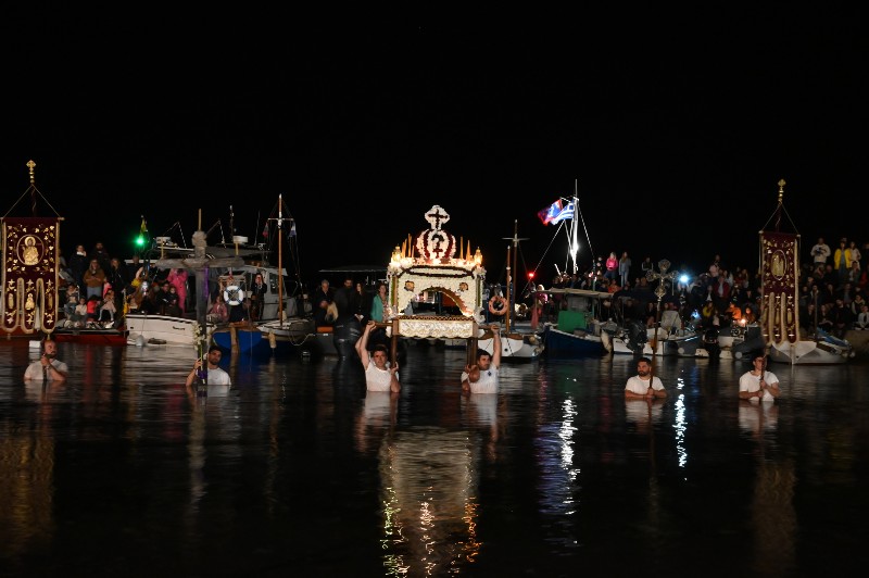 Μεγάλο ενδιαφέρον παρουσίασε μετά από δύο χρόνια απουσίας και το έθιμο του θαλασσινού επιταφίου του Ι. Ναού Τιμίου Προδρόμου στο Καμίνι που προσέλκυσε πλήθος κόσμου που κατέκλυσε το γραφικό λιμανάκι.