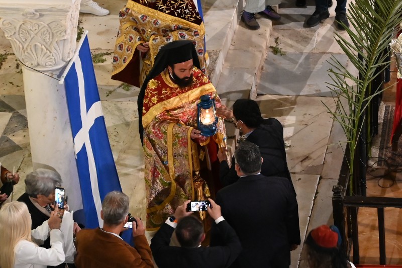 Το Άγιο φως μοιράστηκε στις εκκλησίες αλλά και στον Ιερό Καθεδρικό Ναό όπου το παρέλαβε με ευλάβεια ο Πρωτοσύγκελλος της Μητρόπολης Ύδρας Πανοσιολογιότατος Αρχιμανδρίτης π. Νεκτάριος Δαρδανός.
